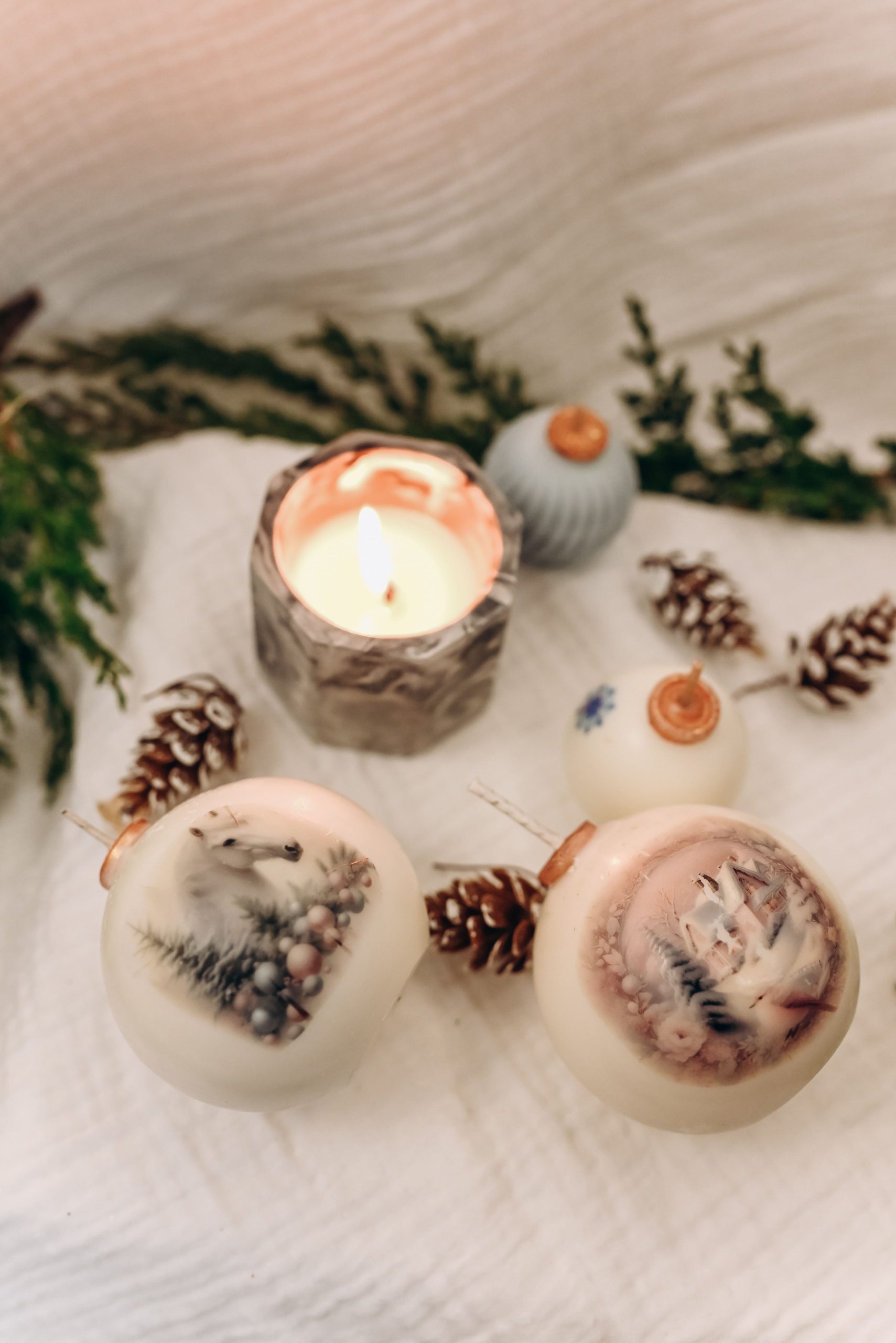 Свеча «Зимняя Сказка» — это нежный свет волшебства и умиротворения, запечатлённый в изящной круглой форме. В каждой детали — трепет зимнего утра: покрытые инеем ели, уютные домики в тишине снега, белоснежный конь, символ чистоты и силы. Тонкая ручная роспись и мягкая цветовая палитра создают ощущение тепла, словно домашний очаг наполняет комнату тихим ароматом праздника. В мире Lan`s Candles это маленькое чудо — приглашение к созерцанию и внутреннему покою.